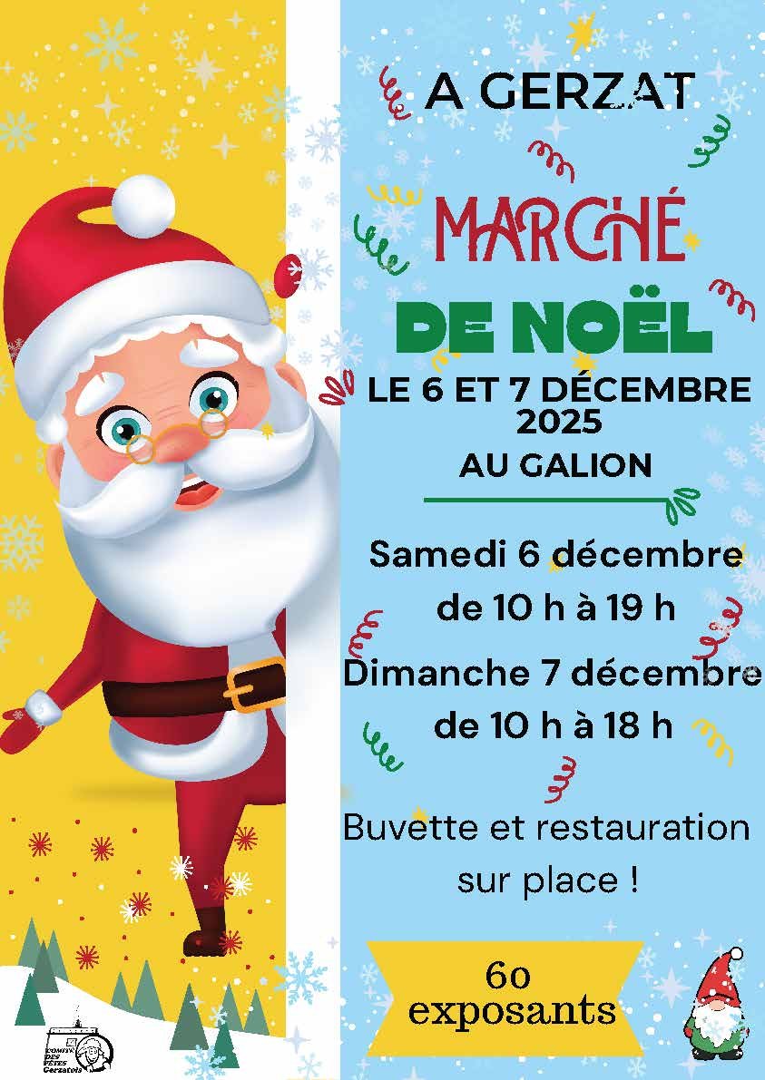 Le grand marché de Noël organisé par l'équipe du Comité des Fêtes Gerzatois se déroulera le week-end du 6 et 7 décembre.